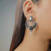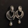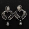 Enhance your jewelry collection with the Ekaashi Floral Heart Drops. These beautifully crafted earrings feature a unique heart-shaped design with intricate floral detailing. The oxidized silver finish provides an antique look, while the pearl accents add a touch of elegance.