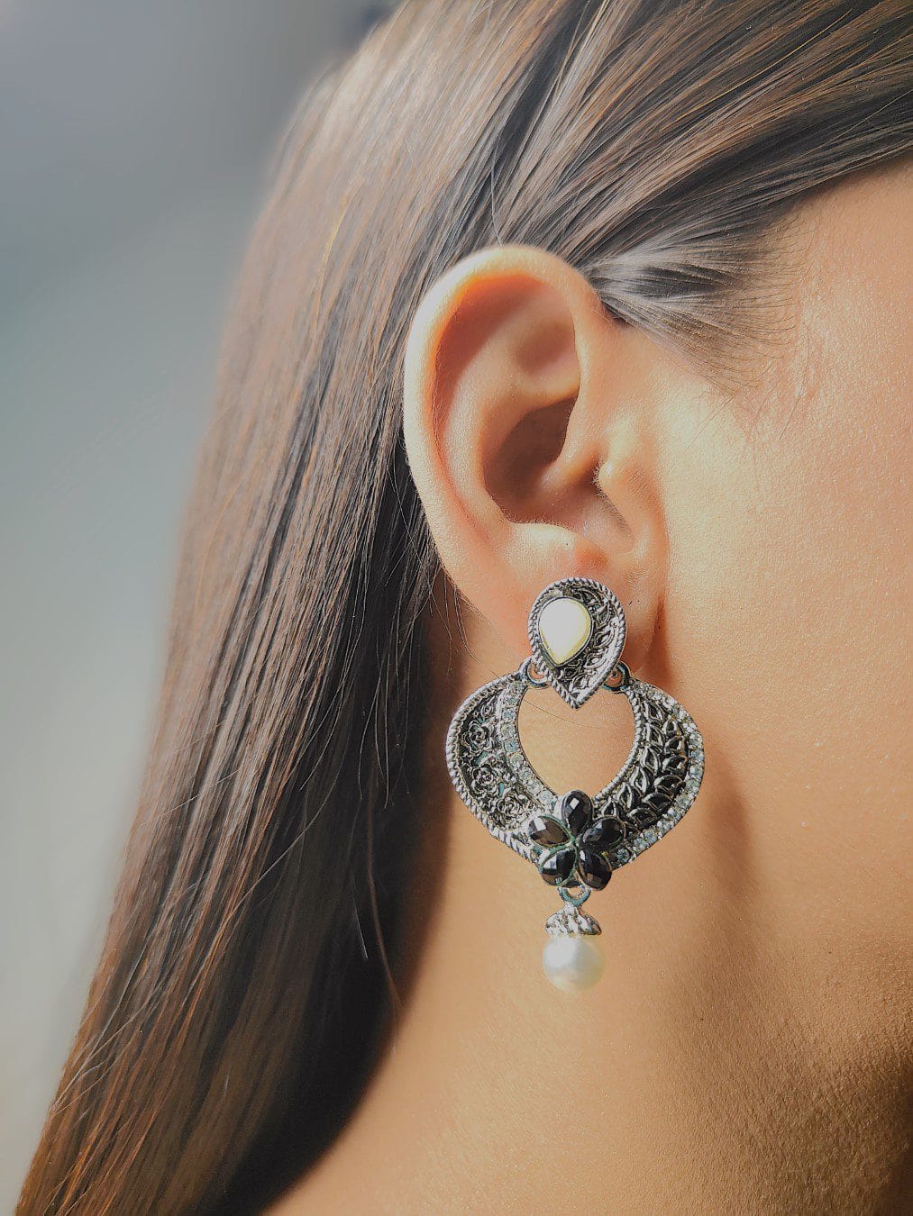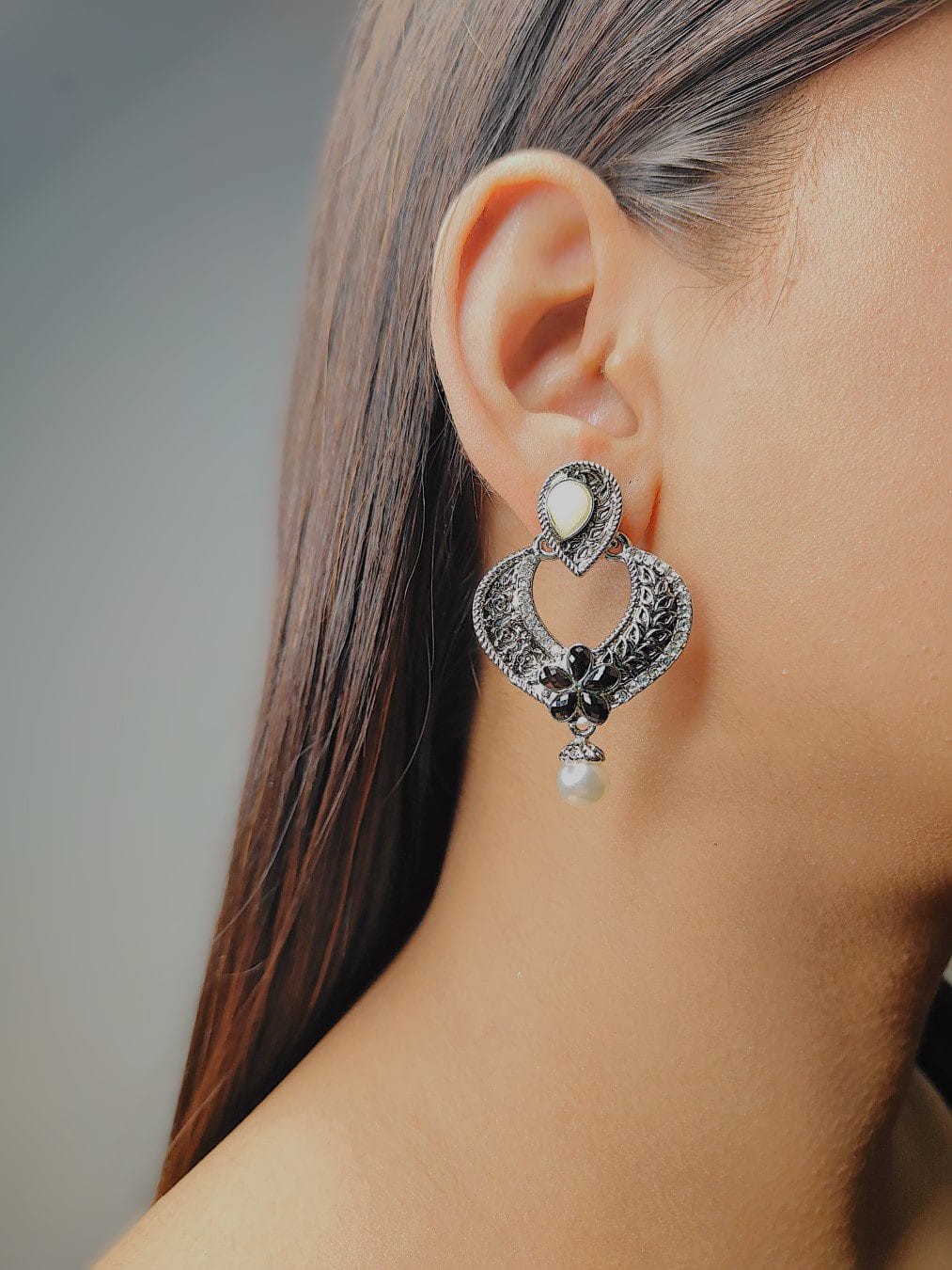 Material: Oxidized Silver, Stones, Pearl Accents